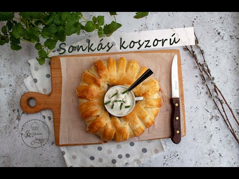 A Banános, nutellás koszorú annyira bejött a családunknak, nagyon finom volt, egyszerű és mutatós. Arra gondoltam, hogy miért ne lehetne sós változatban is elkészíteni ezt a koszorút. Így jött az ötlet, hogy sonkát, sajtot és egy kis tejfölös szószt teszek a leveles tésztába.